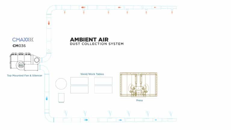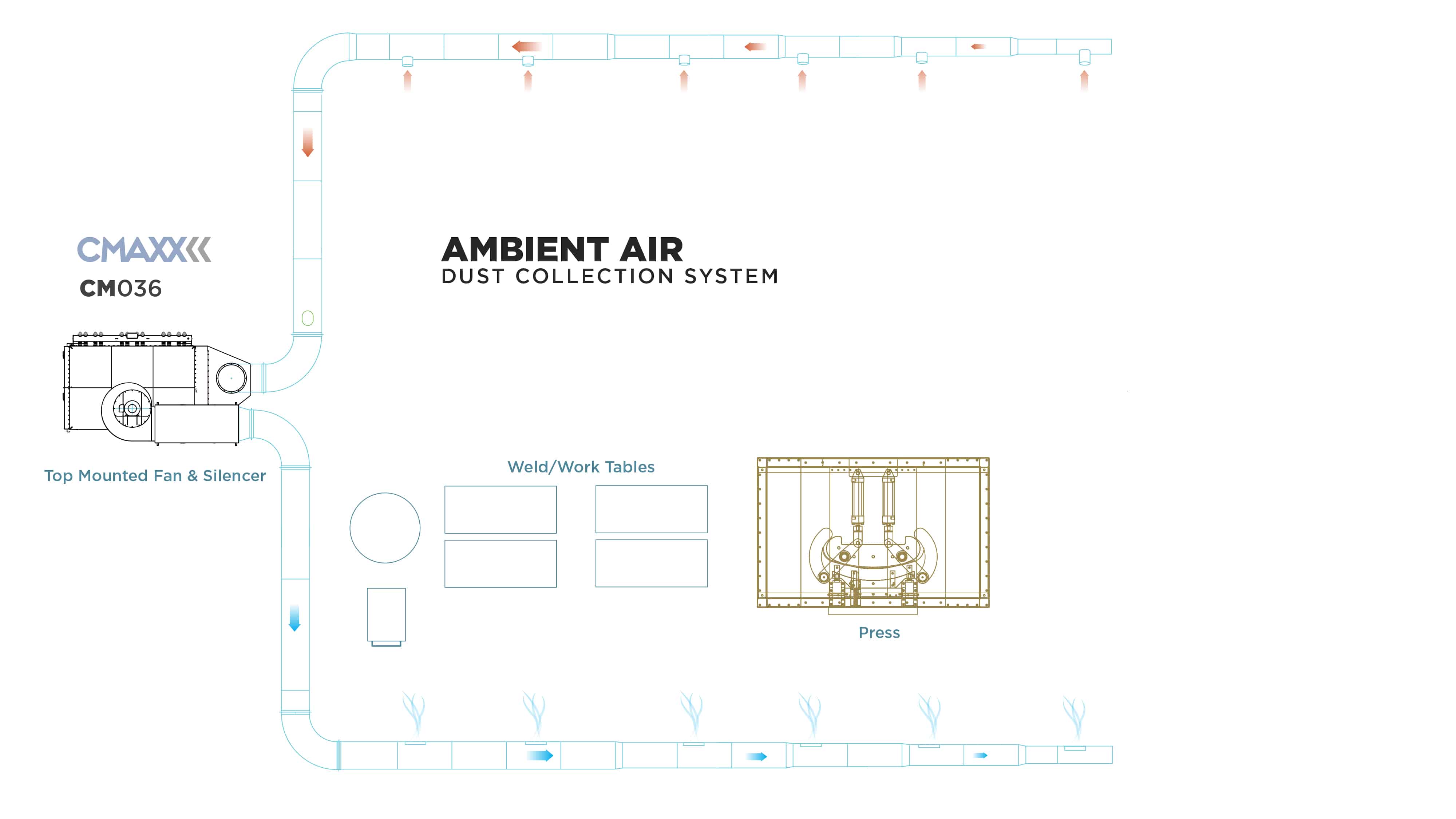 - 通风/排气:如果空气返回建筑物,必须足够干净,以满足所有健康和安全标准。如果灰尘是有毒的,可能需要额外的一层HEPA过滤器。回风风门可以防止回风使灰尘返回系统。带有火花探测器的中止门可以感应火花或火焰,并将火焰转向安全方向。