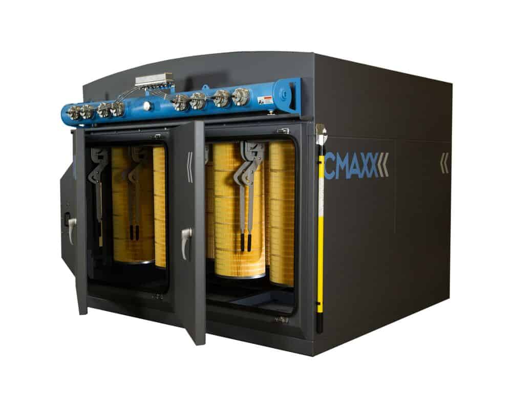 CMAXX公司™ 是一个反向脉冲除尘器,这意味着过滤器是由压缩空气脉冲清洁。脉冲可以在计时器上显示,也可以设置为在传感器检测到过滤器需要清洁时启动。这是推荐的,因为它节省了压缩空气的成本,因为系统只在需要时才脉冲。它还通过减少过滤器的清洁频率来延长过滤器的使用寿命。